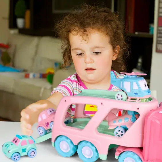 - Measuring more than 17 inches long from front to back. With moving wheels and 4 mini vehicles, this friction powered Vehicle Carrier keeps the excitement moving forward.