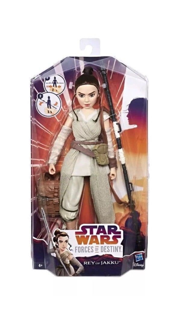 Home / Action Toys / Action Figures & Playsets / Star Wars / Star Wars Forces of Destiny Rey of Jakku Adventure Toy Figure Set - Hasbro C1622 Star Wars Forces of Destiny Rey of Jakku Adventure Toy Figure Set - Hasbro C1622 Stock Status: In Stock Product Code: 5010993414789 Stock Status: In Stock £19.99 Add to your Wish List Description Rey is brave, true to her friends, and stands up for what she believes in! Imagine epic adventures to discover her destiny and her connection to the Force with this Star Wars Forces of Destiny Rey of Jakku adventure figure. This highly-poseable figure features beautiful rooted hair, and a draped top, shirt, belt with scavenger bag, shoes, arm wraps, bracelet, and backpack she can be dressed in to get her ready for adventure. When it's time for action, place her staff in her hand and squeeze her legs together to see strike! Re-create the battles and stories of Star Wars with this true-to-entertainment figure. • Includes: Adventure figure, staff, belt with bag, shirt, draped top, pair of shoes, 2 arm wraps, bracelet, and backpack. • Highly poseable 11-inch Rey of Jakku adventure figure • Squeeze her legs to see Rey swing her staff • Beautiful rooted hair and true-to entertainment features • Dress Rey in the removable draped top, shirt, belt, shoes, arm wraps, and more • Imagine epic adventures with Rey as she discovers her incredible destiny • Figure scale: 11 inches • Ages 4 and up • WARNING: CHOKING HAZARD - Small parts. Not for children under 3 years. Reviews Customer reviews No reviews left yet Write a review Most RecentTop Rated No reviews have been left for this product, be the first to leave a review Attributes MPN: C1622 C1621 Brand: Star Wars Product Code: 5010993414789