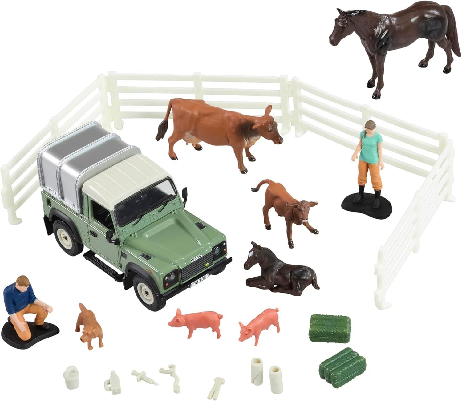 - Includes 1:32 scale Land Rover model with loads of accessories for imaginative play
