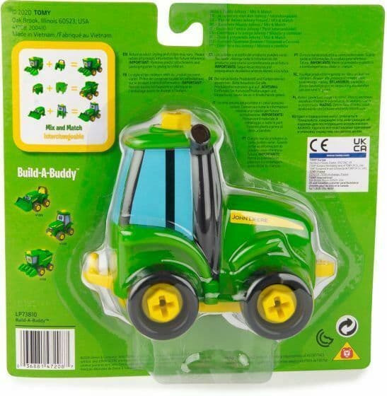 Home / Action Toys / Tomy John Deere Build A Buddy Johnny For Ages 3+ Years Tomy John Deere Build A Buddy Johnny For Ages 3+ Years Stock Status: In Stock Stock Status: In Stock £11.99 Add to your Wish List Description John Deere Build A Buddy Johnny John Deere Build-a-Buddy brings take-apart toy fun to the farm! Young kids will have a great time using the included screwdriver to take Johnny apart and then putt him back together again. Once put together, Johnny's free rolling wheels are perfect for push along play. All toys in the Build-a-Buddy line feature interchangeable parts that can be swapped from vehicle to vehicle. Get creative and make a funny mash-up farm vehicle with one of Johnny's friends! (sold separately) Done for the day? The screwdriver stores easily under Johnny's chassis so it'll be ready for more take-apart toy fun. Part of the Build-a-Buddy family All toys in the Build-a-Buddy line feature interchangeable parts. The screwdriver stores easily under Corey's chassis. Officially Licensed John Deere product. For children 3+ years. Material: Durable plastic Reviews Customer reviews No reviews left yet Write a review Most RecentTop Rated No reviews have been left for this product, be the first to leave a review Attributes MPN: 47208 Brand: John Deere